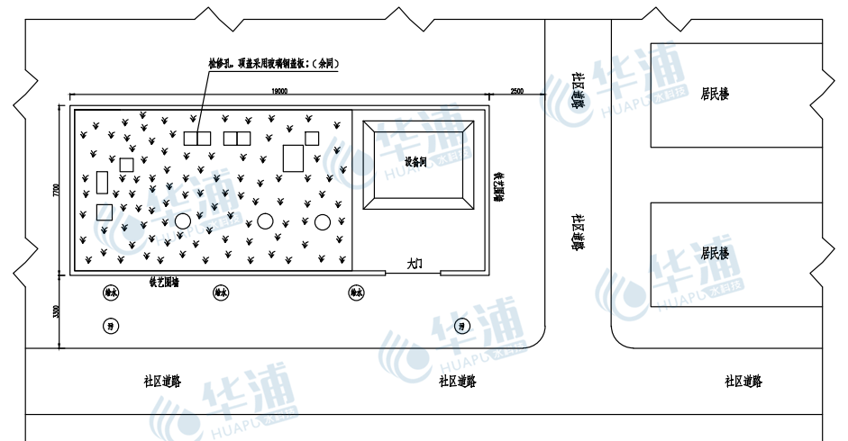 2.污水處理設(shè)施采用全地埋式一體化設(shè)備,地表可綠化和周圍整體環(huán)境協(xié)調(diào),廠區(qū)占地面積少,地面構(gòu)筑物少。