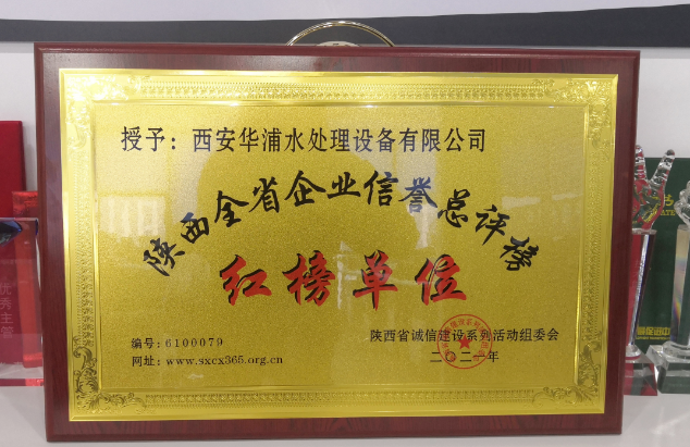 近日,西安華浦水處理設(shè)備有限公司被評(píng)為“陜西全省企業(yè)信用總評(píng)榜紅榜單位”。