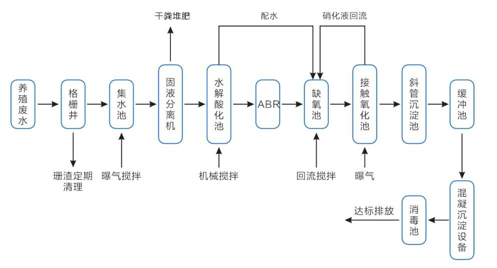 針對(duì)屠宰污水處理所面臨的痛點(diǎn):廢水含量復(fù)雜,污水中高濃度的有機(jī)廢水等問題。華浦采用預(yù)處理固液分離降低后端生化壓力,厭氧與好氧相結(jié)合的方法。達(dá)到屠宰污水凈化的目的。
